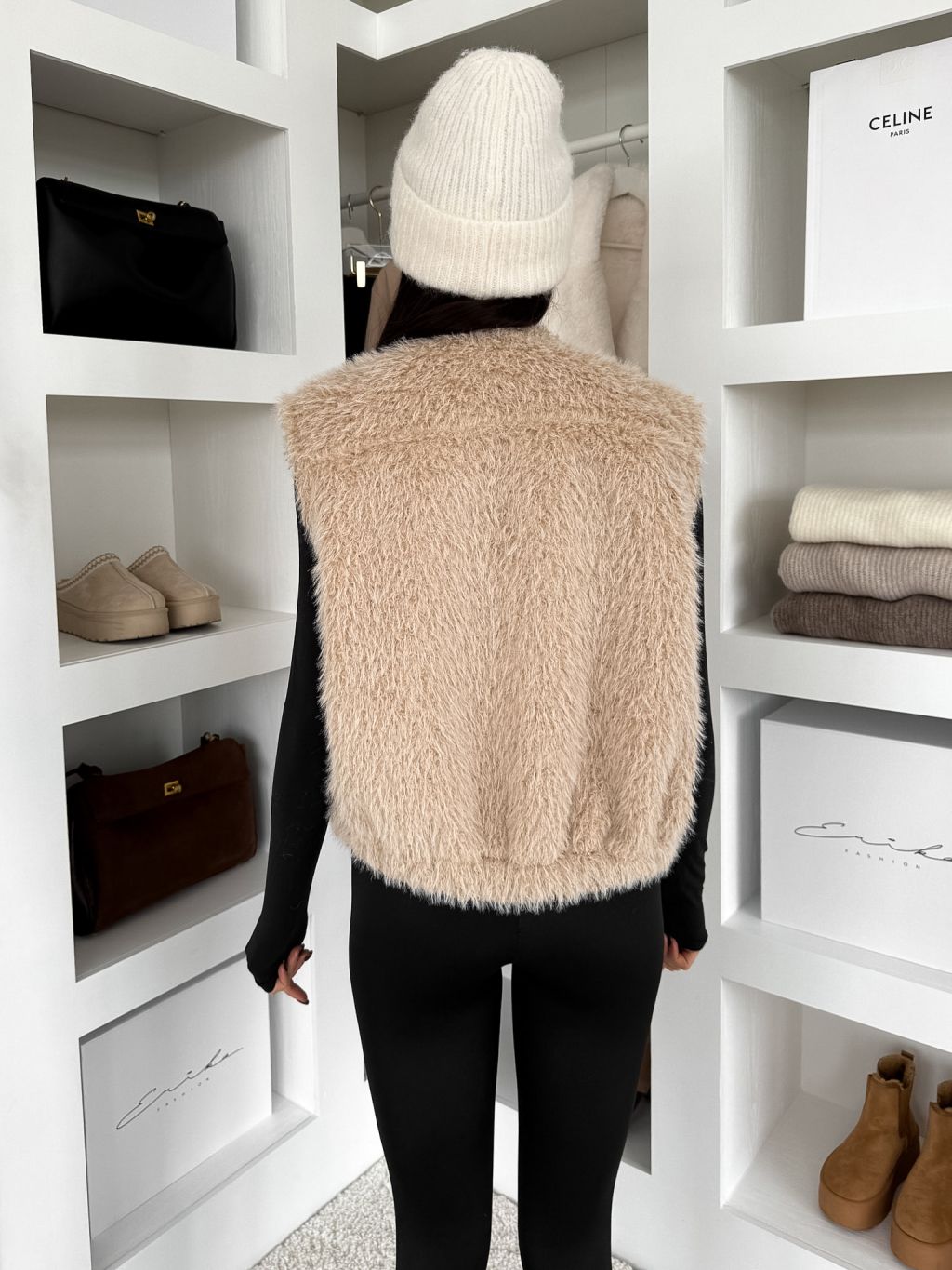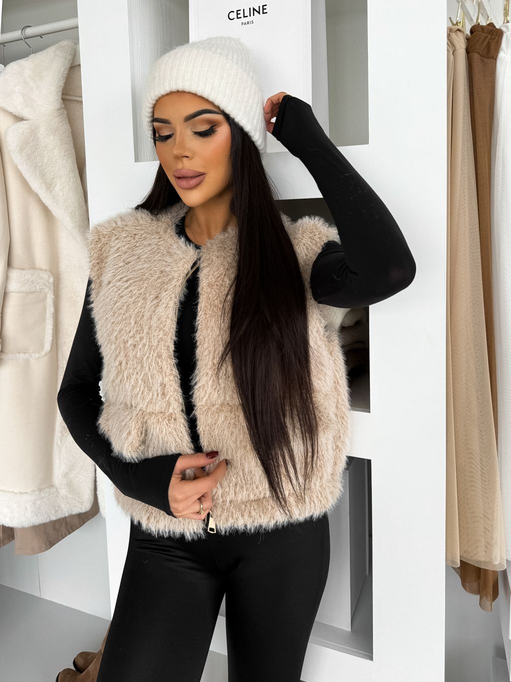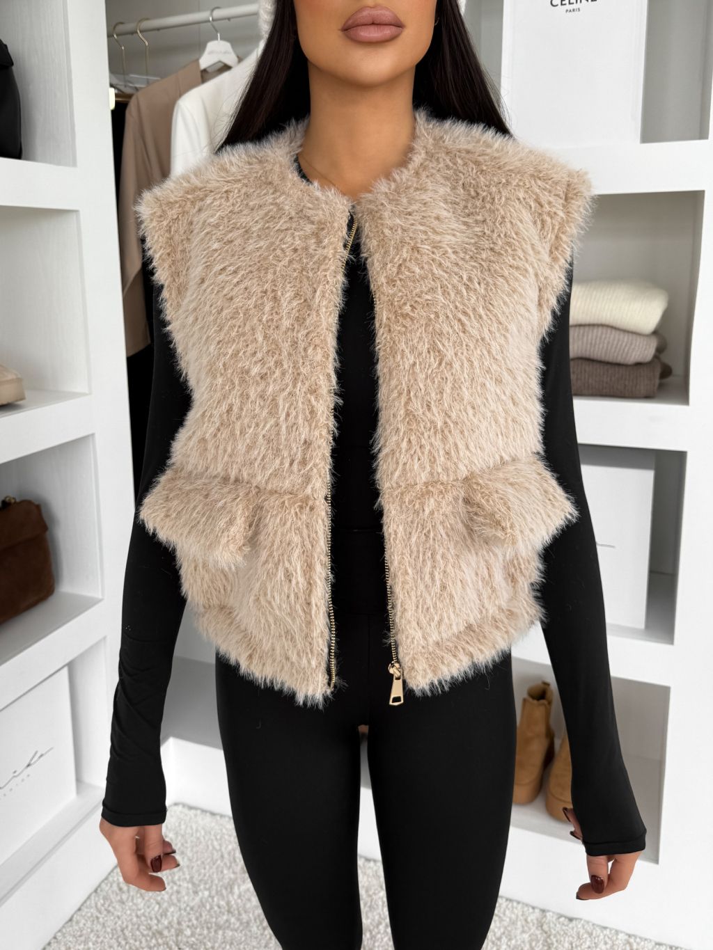 Béžová teddy vesta SOLVEN