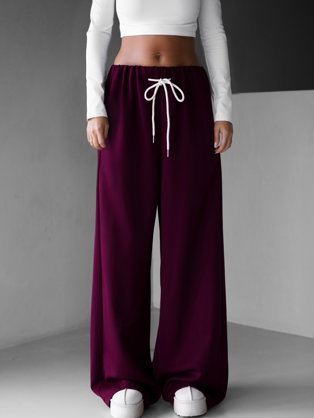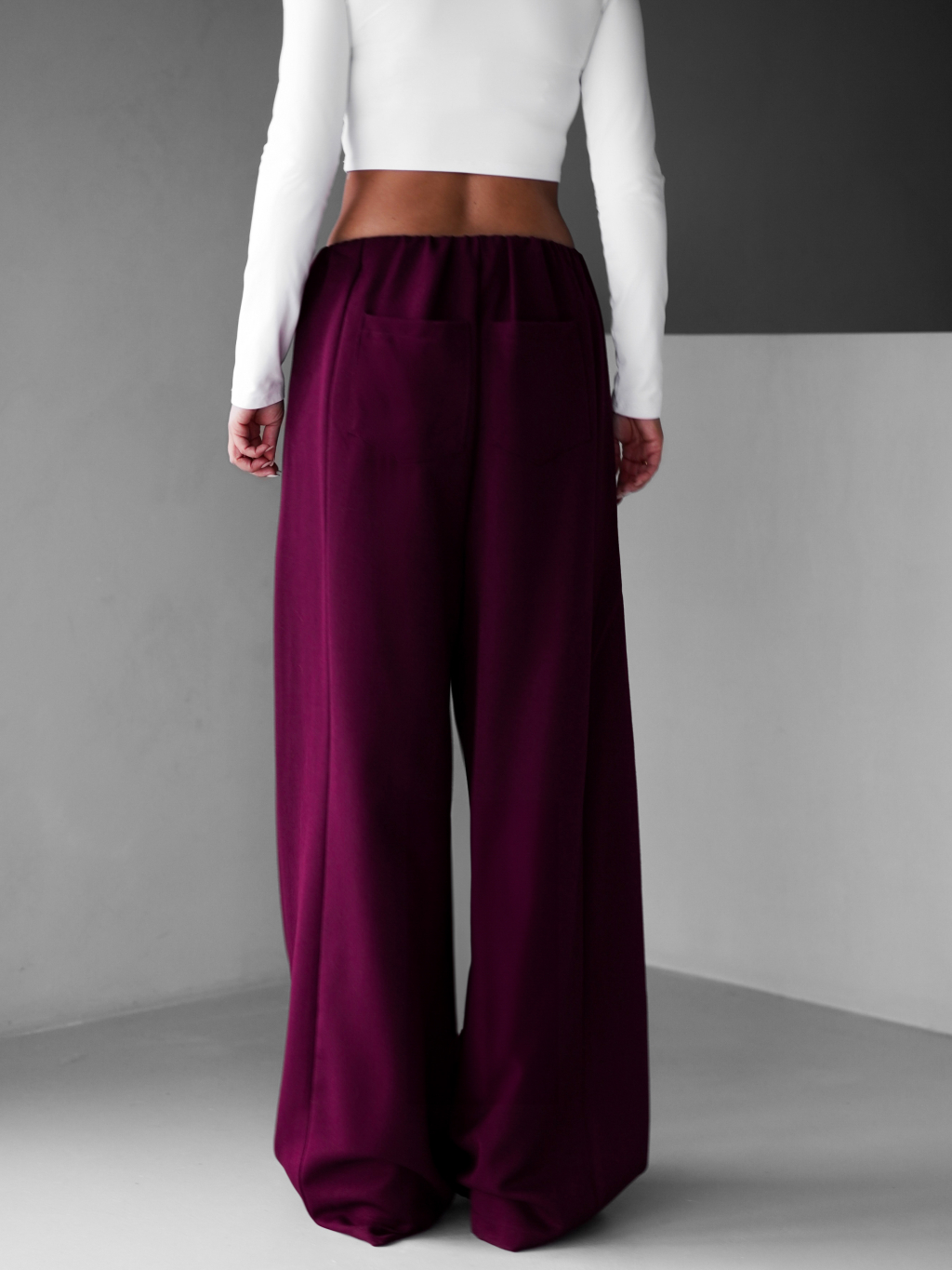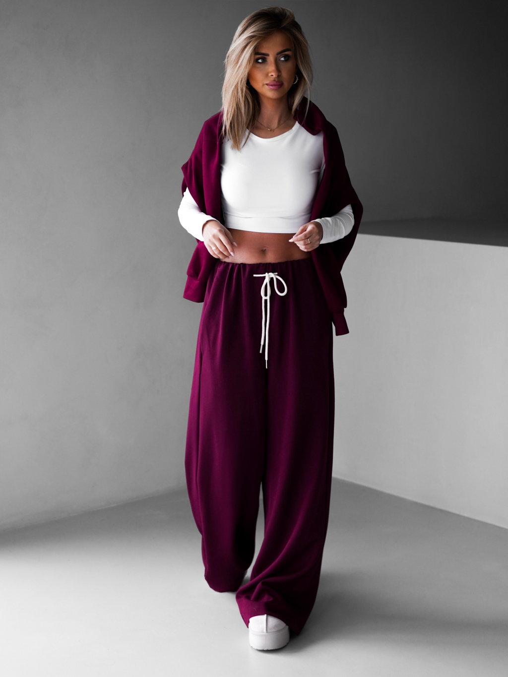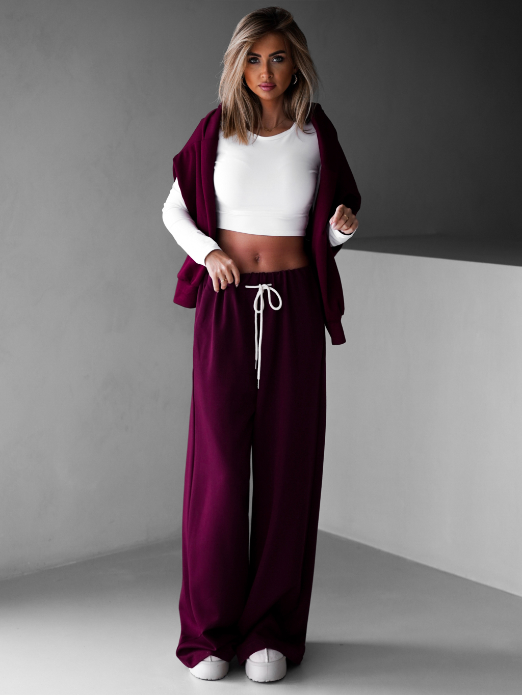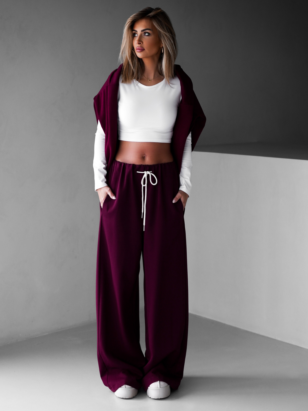 Bordové široké nohavice SOFIER s rozšírenými nohavicami