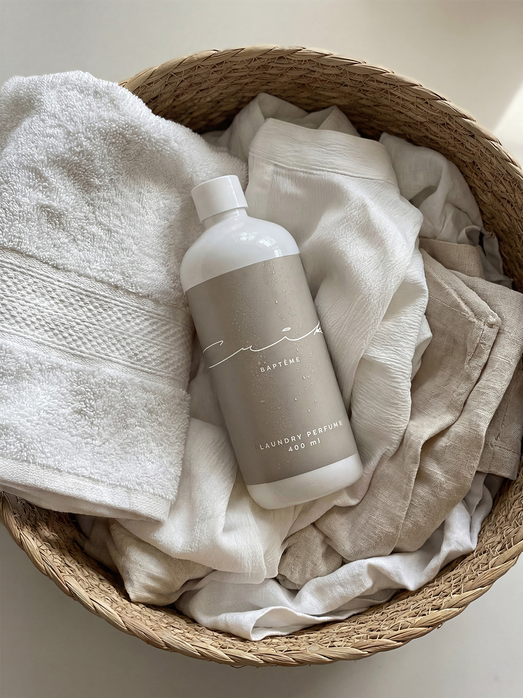 BAPTÊME nie je vôňa, ktorá má dominovať. Je to parfém do prania pre chvíle, kedy chcete spomaliť, nadýchnuť sa a cítiť sa pokojne a vyrovnane