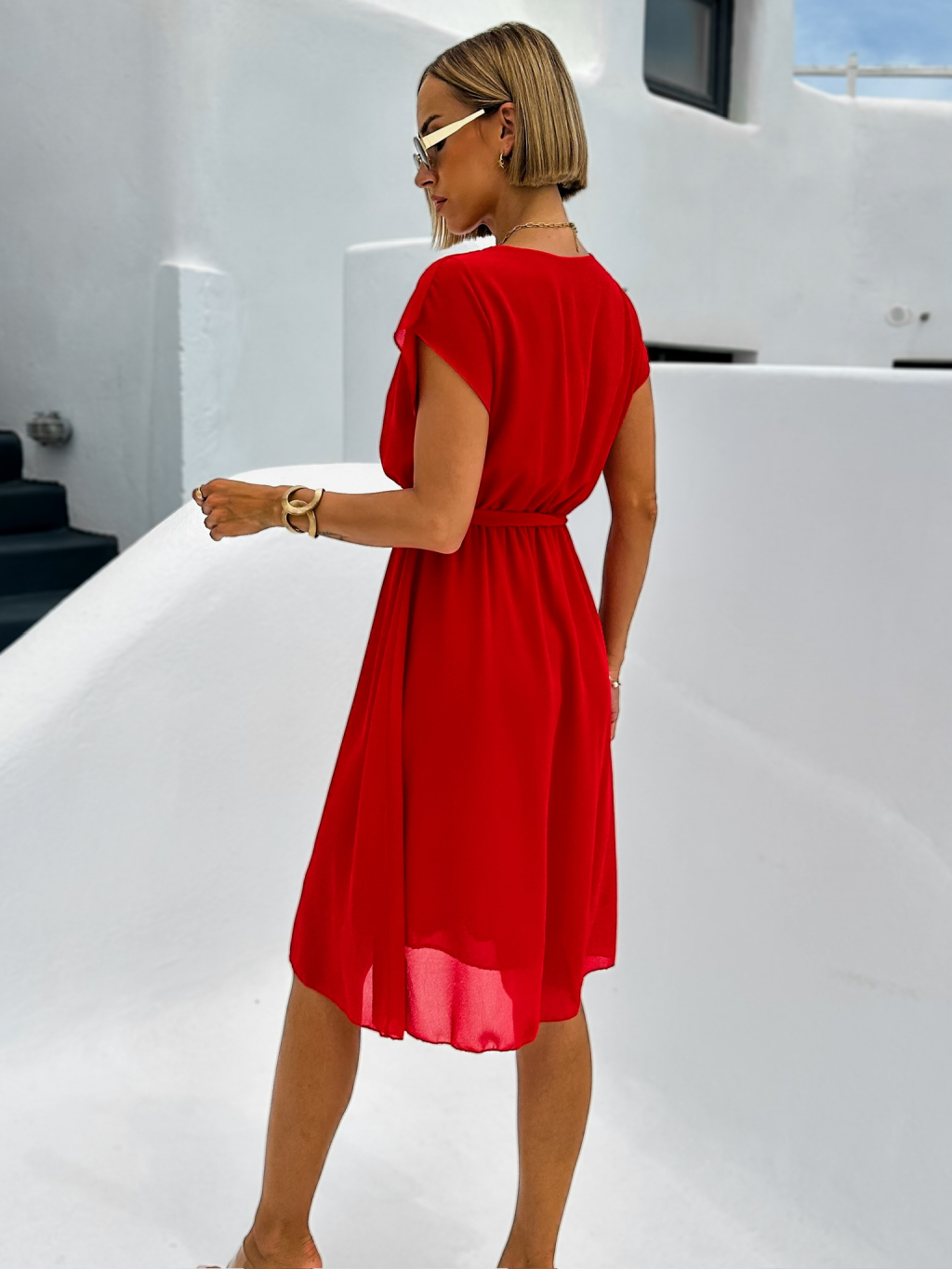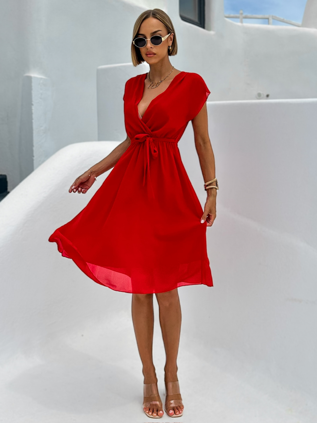 Červené elegantné šaty EDVIN s výstrihom