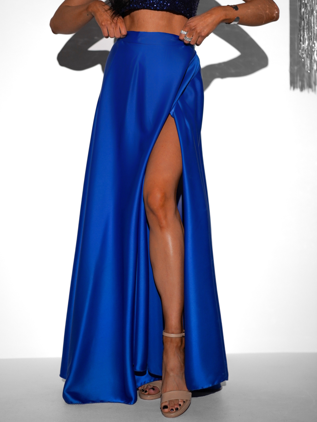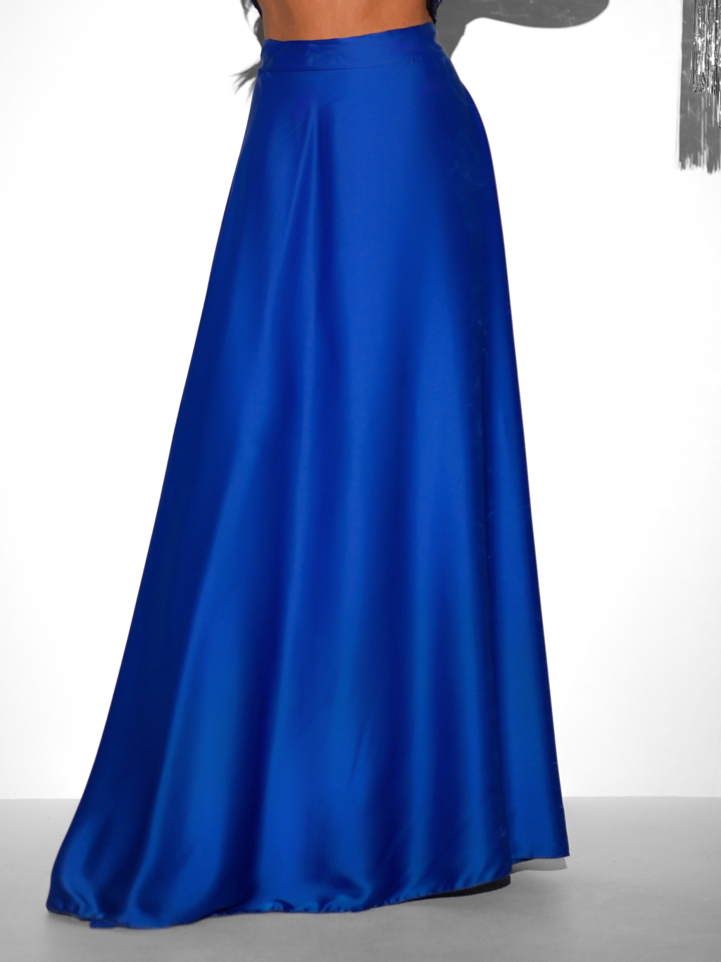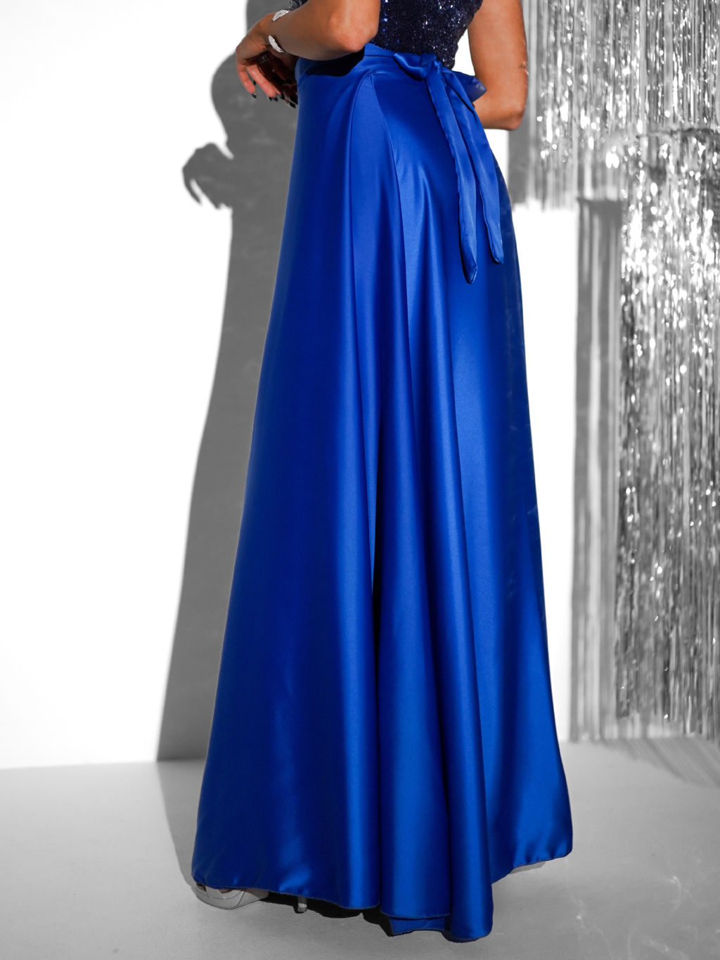 Modrá saténová dlhá zavinovacia sukňa DENISSE