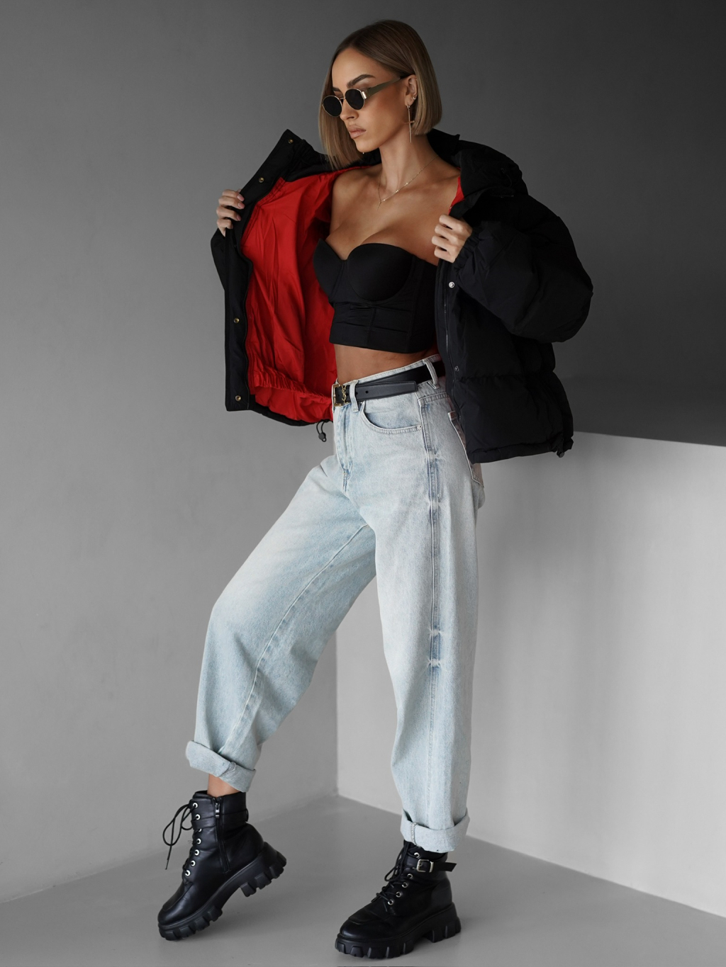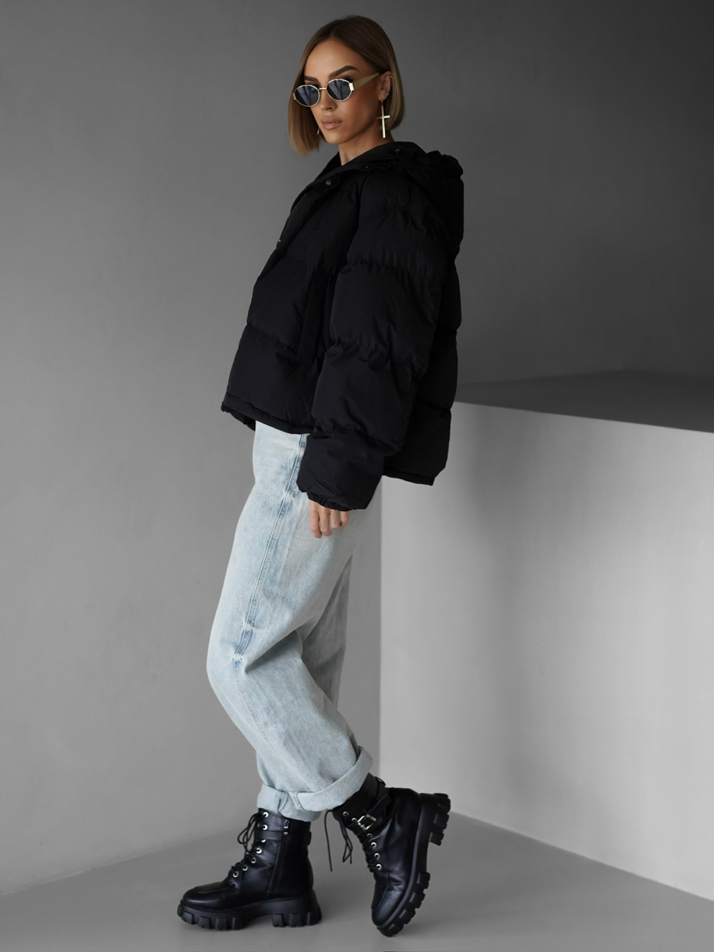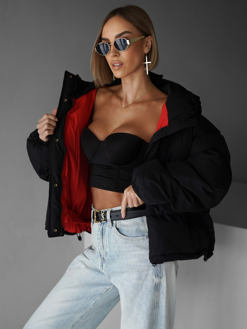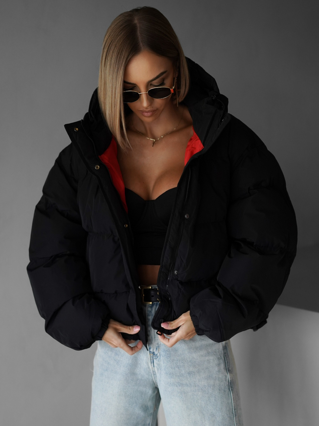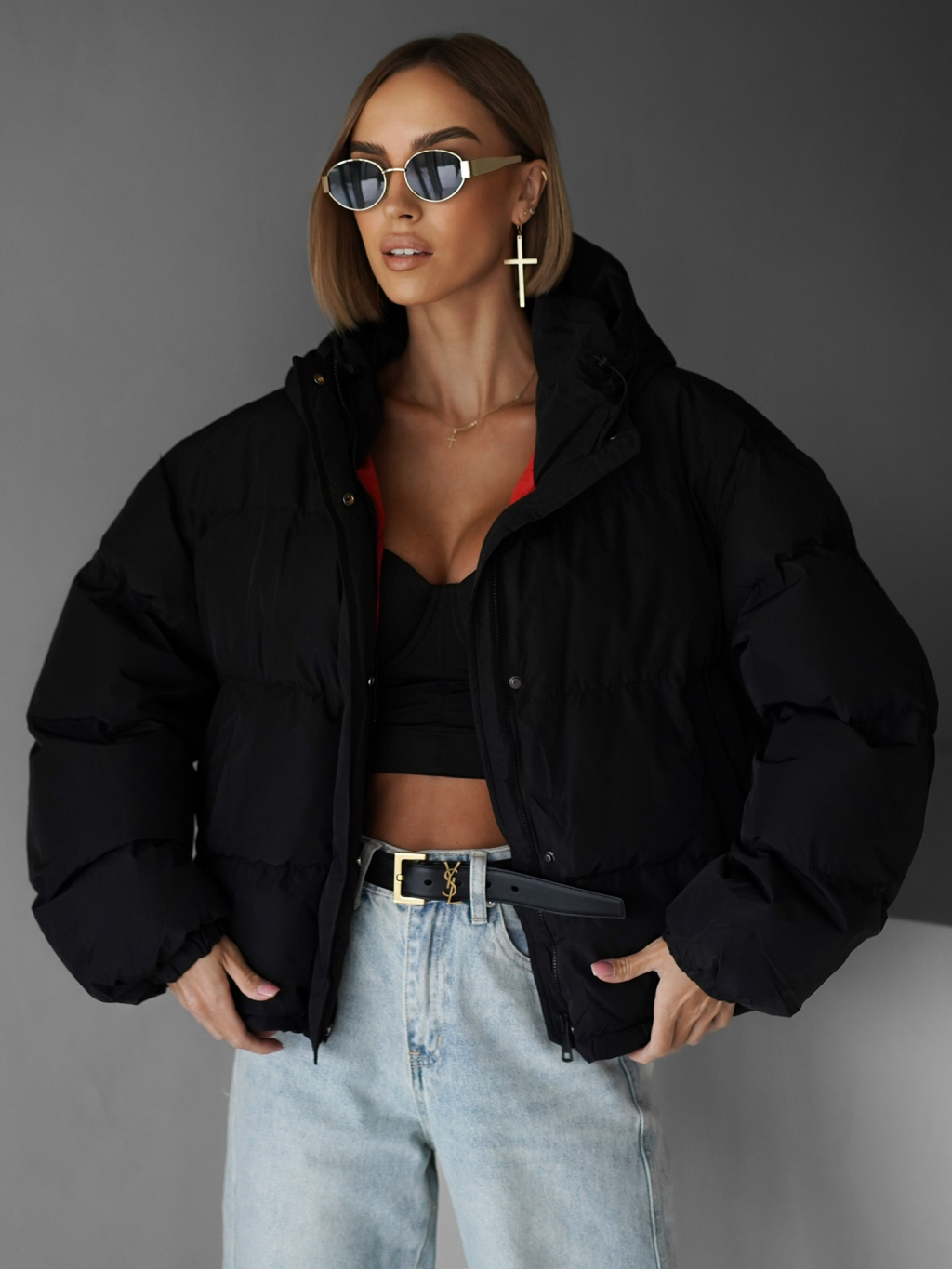 Čierna zimná prešívaná krátka bunda RIZPAH