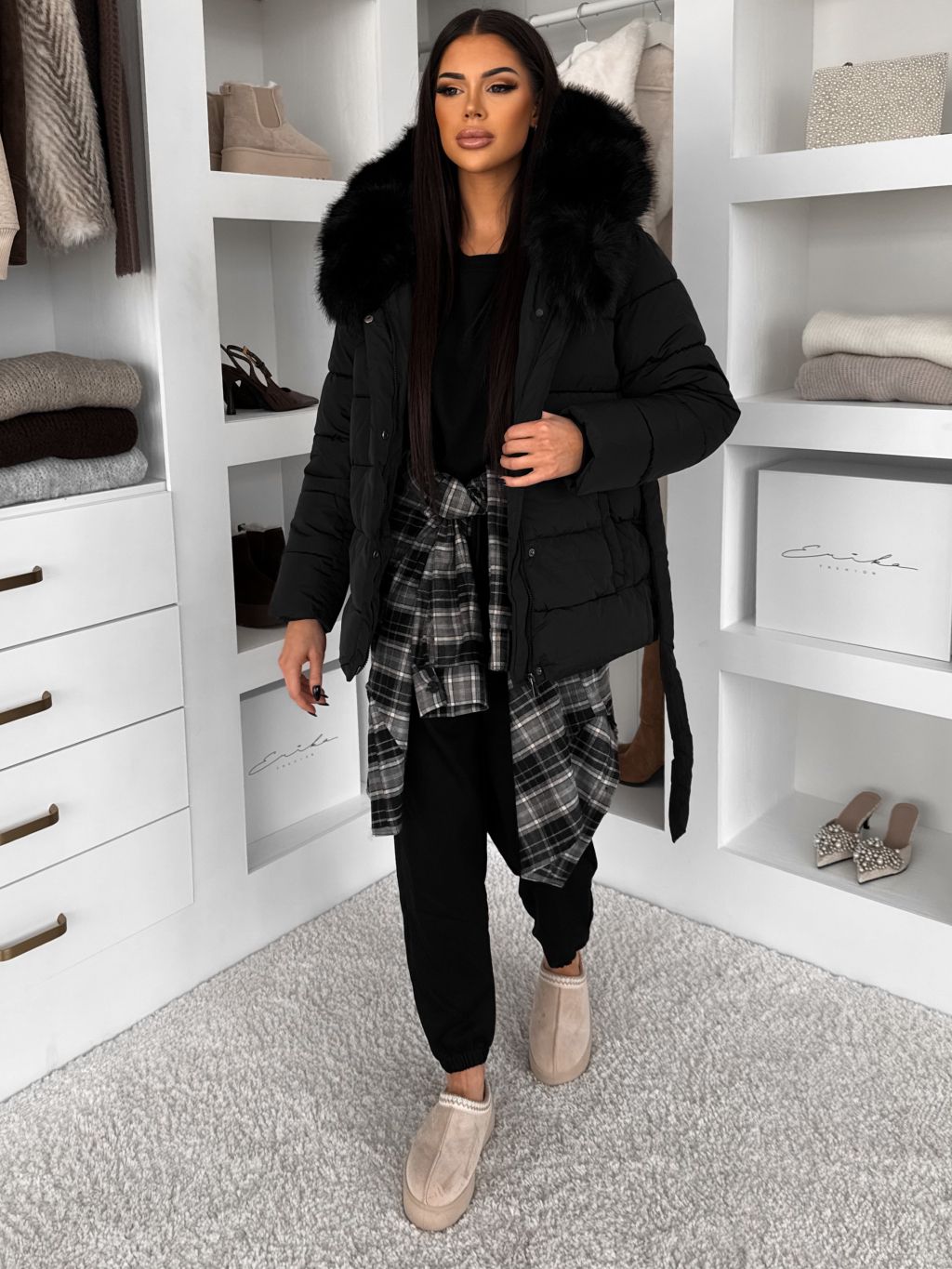 Čierna zimná prešívaná vypasovaná bunda BRUNEVA s viazaním