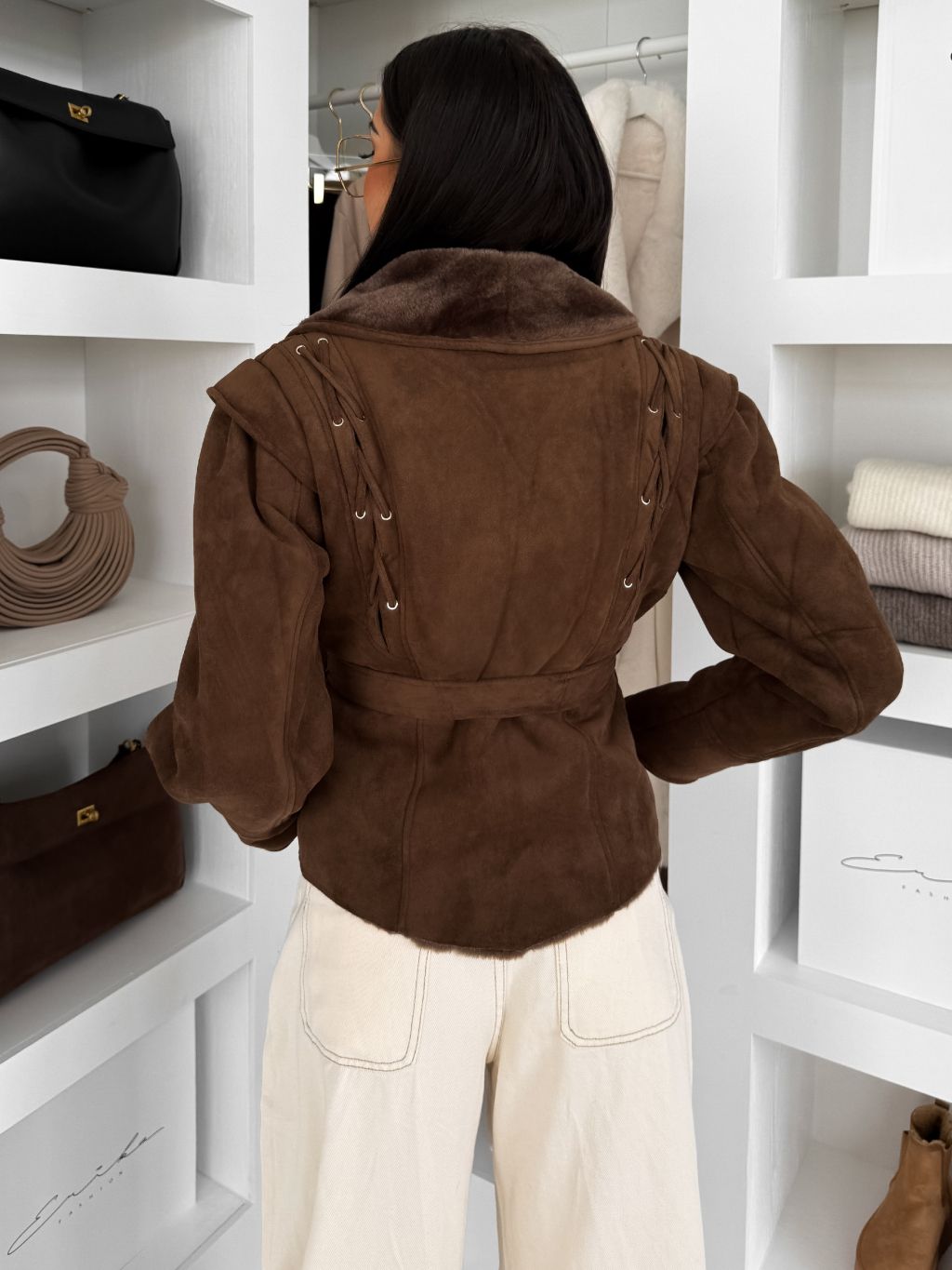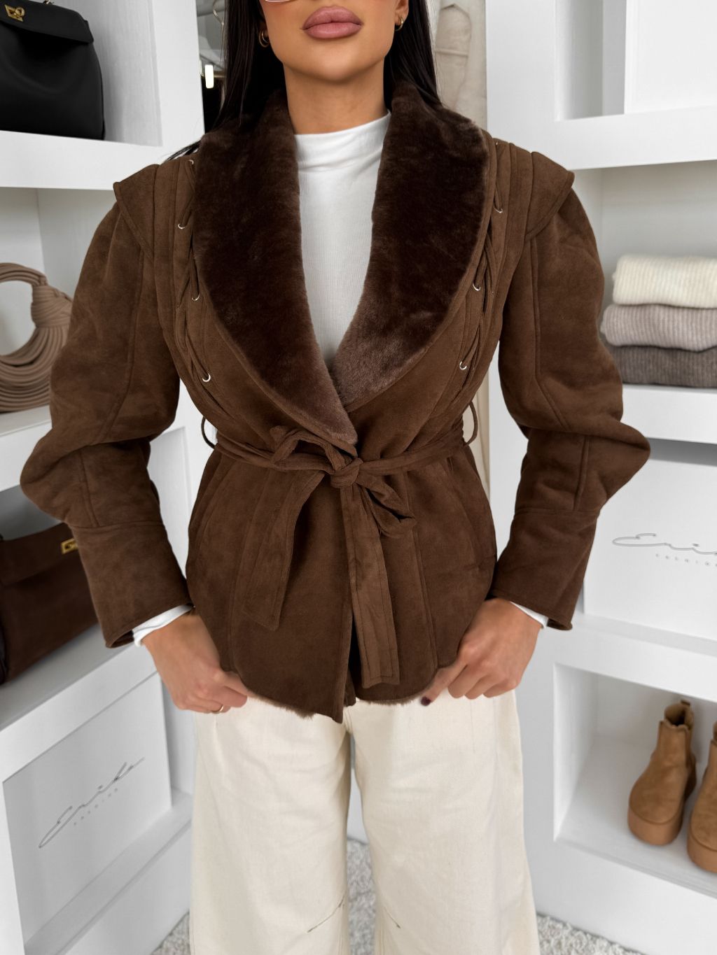 Hnedá semišová vypasovaná bunda LAVETON s kožúškom
