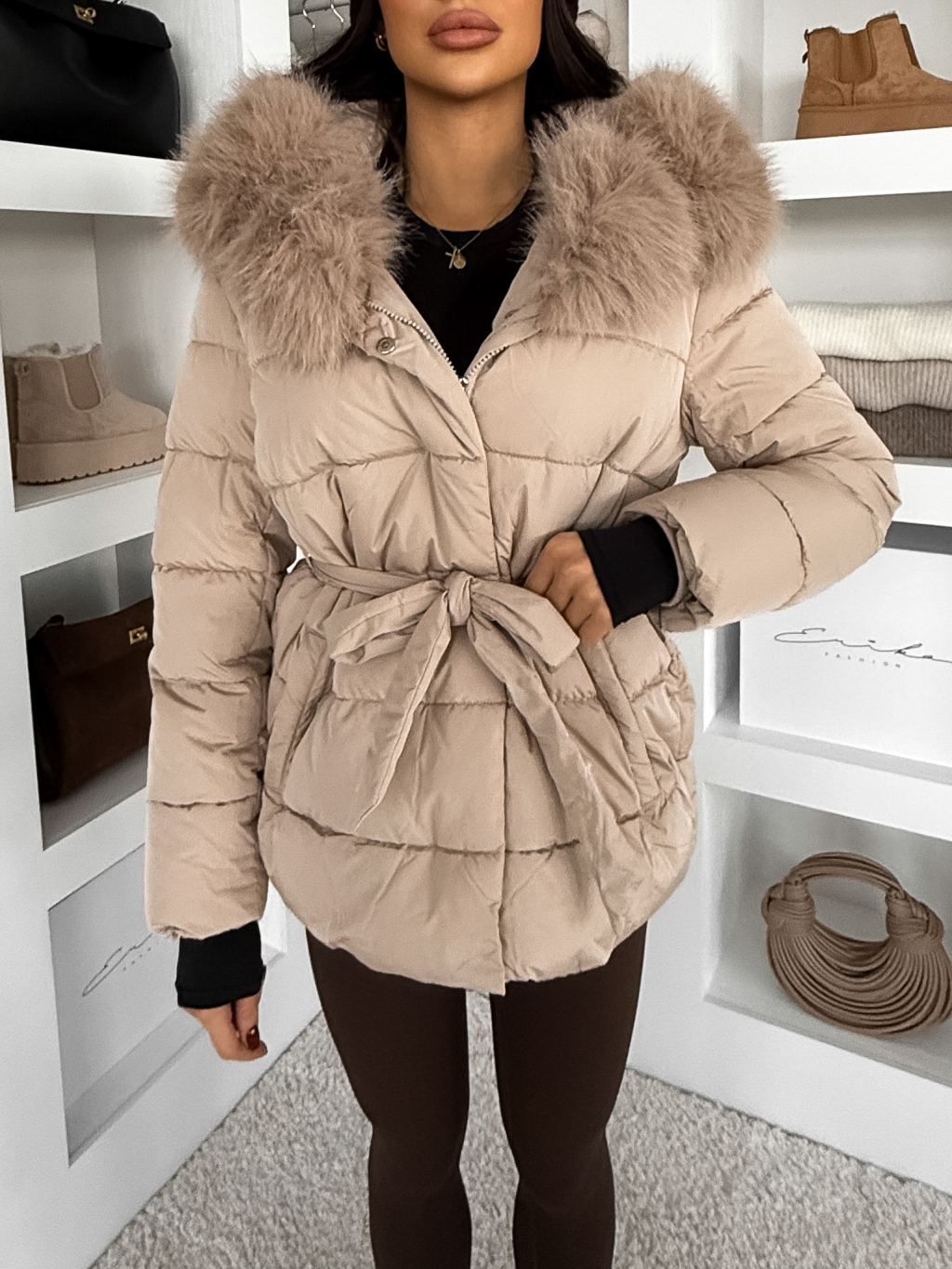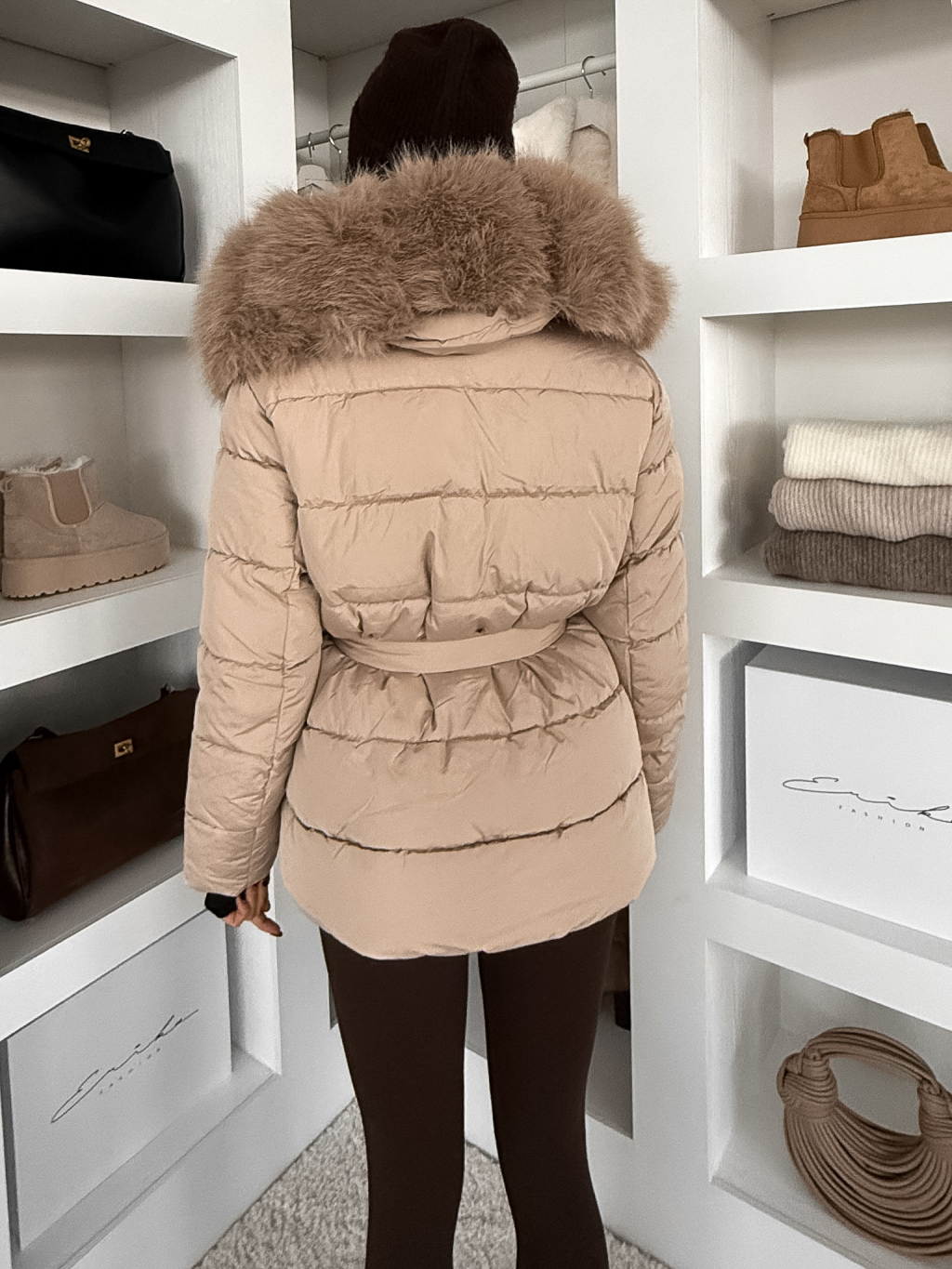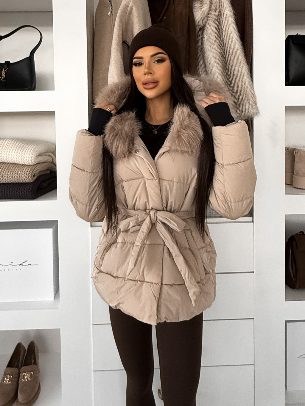 Krémová zimná prešívaná krátka bunda BRUNEVA s kapucňou