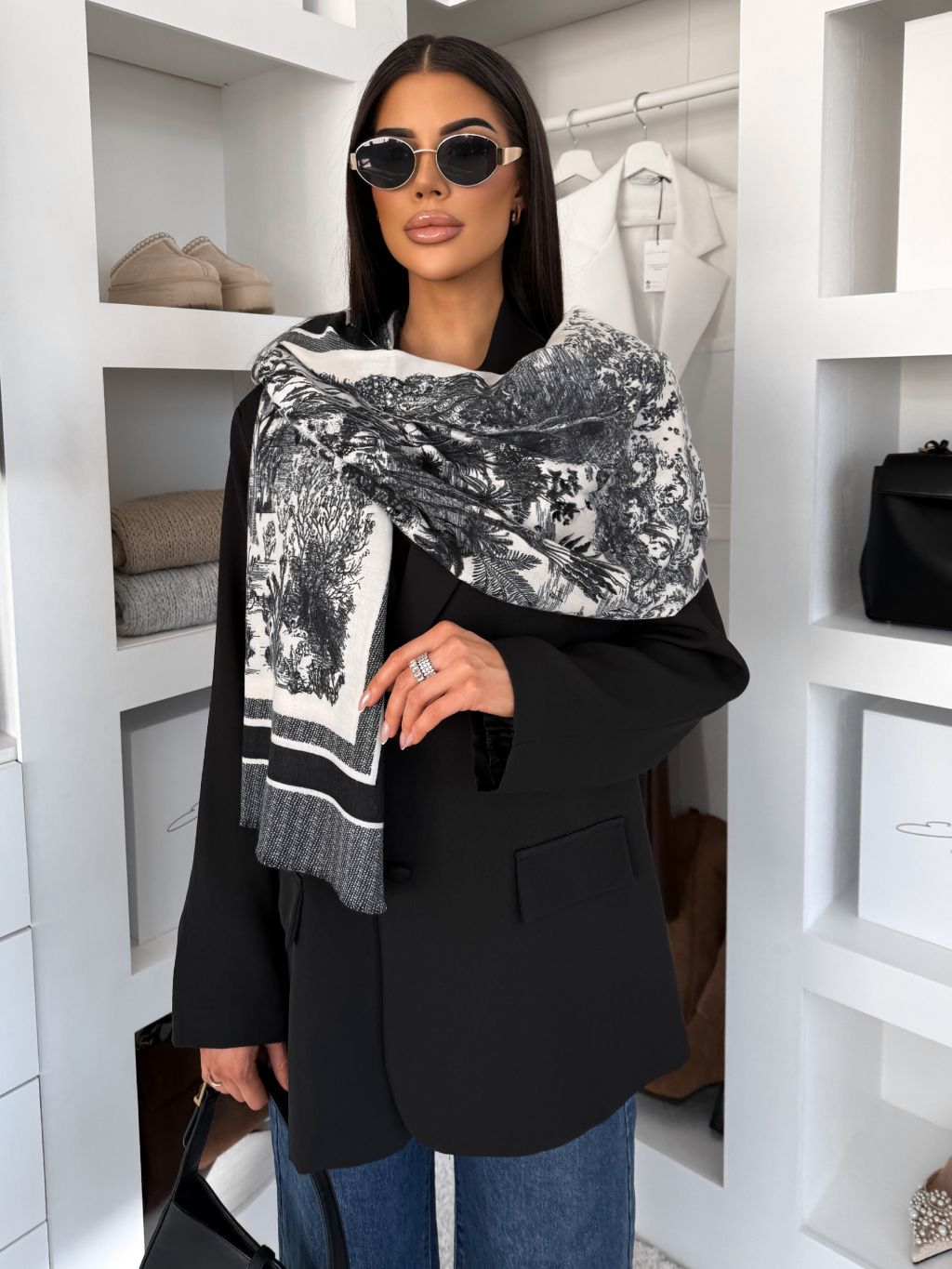 Čierny elegantný dlhý šál WENOLAI